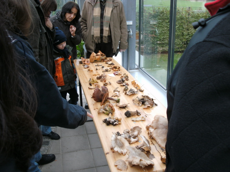 Tisch mit Pilzen und Publikum